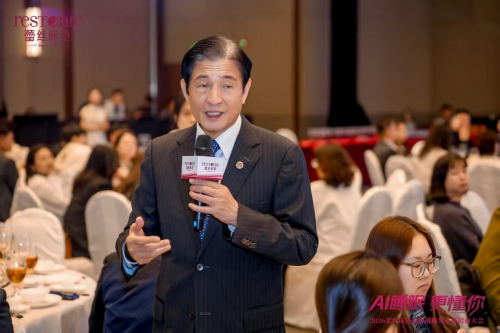 “AI 睡眠更懂你”主题晚宴盛大启幕,运时通控股集团董事长陈燕木博士发表致辞。他首先向长期以来支持蕾丝床垫发展的经销商伙伴、各界朋友表达了诚挚的感谢,肯定了品牌过往取得的发展成就,深度分享了蕾丝床垫近百年的品牌积淀、全球化生产智造布局与核心技术优势,同时描绘了蕾丝床垫未来的发展蓝图,对全体合作伙伴提出了殷切期望,为品牌未来发展指明了方向。