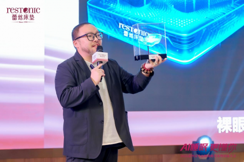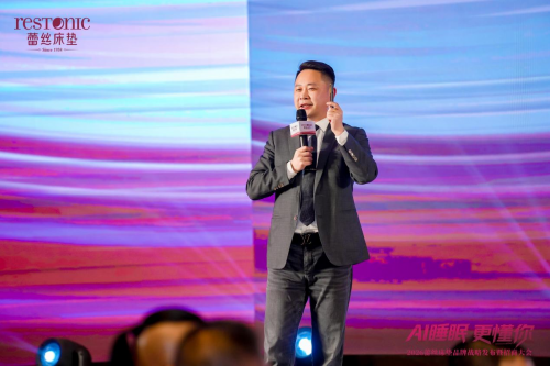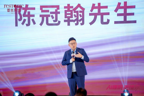 运时通控股集团总裁陈冠翰先生登台致开幕辞。他深度剖析了行业发展趋势,指出健康睡眠已成为全民刚需,睡眠需求正是行业核心增长风口。