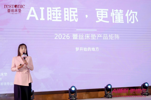 作为“AI 睡眠 更懂你”核心战略的落地载体,蕾丝床垫 2026 年新品矩阵成为本次大会的核心亮点。蕾丝床垫事业部商学院院长袁玉洁全面揭开 2026年新品矩阵的神秘面纱,围绕 AI智能感知系统、精准承托技术、生态环保材质、人性化设计四大核心亮点,解锁了新品的非凡魅力与核心优势,呈现了品牌从“单一硬件产品”到“全场景健康睡眠解决方案”的升级突破,展现了品牌以AI 科技重新定义个性化睡眠体验的硬核实力。